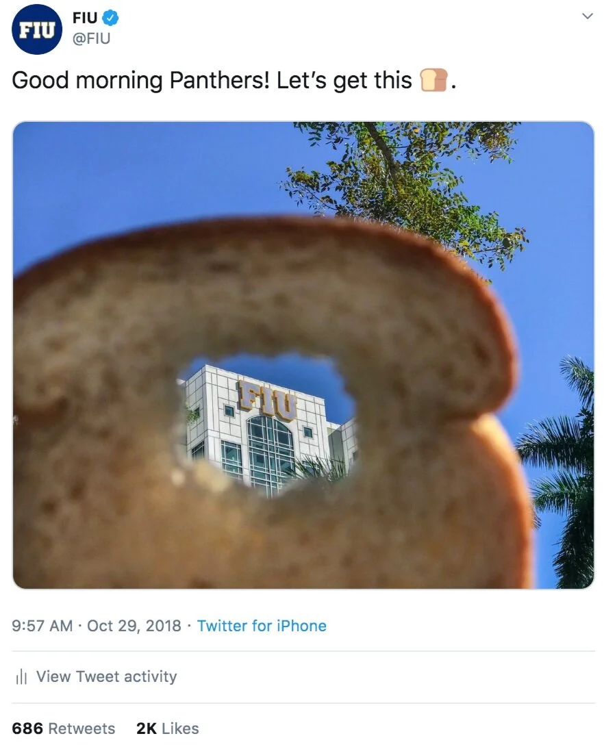 across all flagship social media channels that include, Facebook, Instagram, Twitter, LinkedIn, Snapchat and Tik Tok. Below is a look at how Florida International University (FIU) social performed under my creative and strategic lead from October 2015 through January 2020.